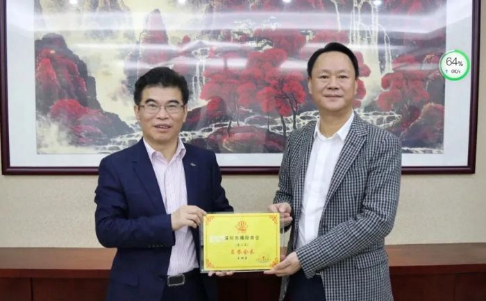深圳市揭陽商會黃時余會長為理宗會長授予名譽會長牌匾