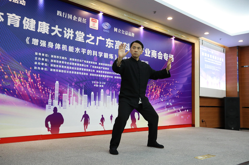 近年來企業家健康問題令人堪憂,作為經濟轉型發展的中堅力量,好的身體是繼續做貢獻的本錢。理宗會長常說,唯有健康的身體,才有健康的精神,貧弱的身體,無法培養有活力的靈魂和智慧。為了幫助會員提升健康意識,普及科學運動知識,讓企業家擁有好身體,好心情,好精神,廣東高科技產業商會攜手深圳市體育中心,組織80多名會員走進“深圳市體育健康大講堂”,聆聽科學運動專家、國家級科研指導佘軍標教授講授如何通過科學鍛煉來增強我們的身體機能,同時通過體質檢測,更好地了解自己的身體,從而找到適合的運動方式,避免不當運動造成的損傷,同時,著名武術大師、弘武太極創始人、孫式太極拳第四代嫡傳李斌為大家展示了被稱為完美運動的太極,讓大家的身心與大腦在休憩與放松中,獲得啟迪與力量。