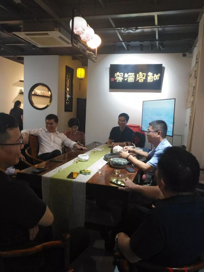理宗會長將龍崗作為商會戰略實施的重要區域,非常關注龍崗企業及會員的發展,除了考察項目,交流合作外,理宗會長還走訪了深耕龍崗的兩家獨具特色的文化創意企業——隱萃堂中醫館和酣客文化傳播有限公司,與隱萃堂堂主、中國式雅致生活的倡導者和踐行者蔡陳戈,酣客文化董事長、春風樓樓主胡春豐切磋茶酒文化,交流健康理念,賓主相洽,一見如故,相談甚歡。
