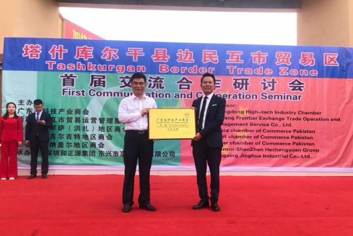 2019年6月22日,由我會與新疆邊民互市貿(mào)易運營管理有限公司,巴基斯坦罕薩(洪扎)地區(qū)商會、巴基斯坦吉爾吉特地區(qū)商會、巴基斯坦納蓋爾商會聯(lián)合主辦、深圳和正源集團、東興市京華實業(yè)有限公司聯(lián)合承辦的塔什庫爾干縣邊民互市貿(mào)易區(qū)首屆交流合作研討會在新疆塔什庫爾干縣舉行,近百家中國深圳援疆企業(yè)與巴基斯坦企業(yè)家們參加了此次研討會,同時在塔什庫爾干縣設(shè)立廣東高科技產(chǎn)業(yè)商會“一帶一路”中巴邊民互市進出口貿(mào)易基地。