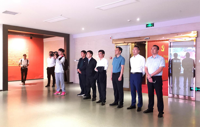 在黨群服務中心大廳,理宗會長對康利達運用企業文化與黨建元素進行空間設計,運用黨徽、黨星、黨旗作為亮點符號,把紅色背景作為銜接空間連續的特性,讓參觀者擁有耳目一新的感受,給與充分的肯定。對《畫說黨史》宣傳片以油畫形式展現給予了高度評價,認為很新穎、很獨特、很有感染力。在黨性教育版面前,理宗會長不時駐足觀看并與人交流。
