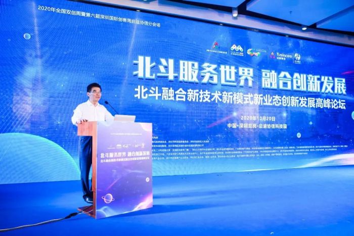為促進我國北斗產業化發展,進一步加快推廣我國北斗系統產業在大眾消費的廣泛應用,促進國家“雙創”戰略與“北斗衛星導航”跨領域融合應用發展。10月20日,由深圳市發展和改革委員會、深圳市科技創新委員會、深圳市龍崗區人民政府主辦,深圳市龍崗區科技創新局、深圳龍崗區啟迪協信科技園發展有限公司聯合承辦“北斗服務世界,融合創新發展”——北斗融合新技術新模式新業態創新發展高峰論壇在啟迪協信科技園舉行。王理宗會長出席啟迪協信科技園“北斗產業基地”揭牌儀式并發表演講。