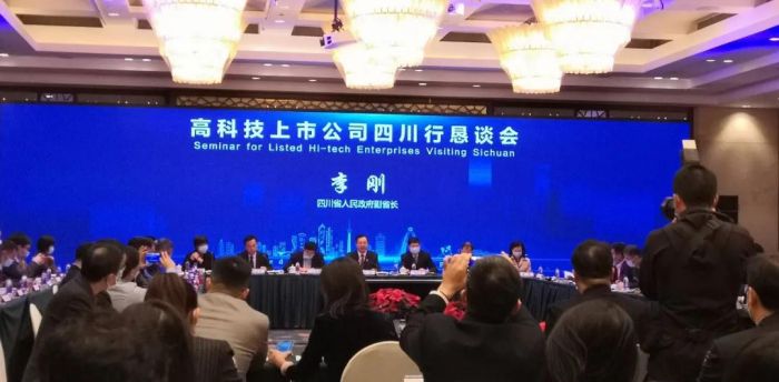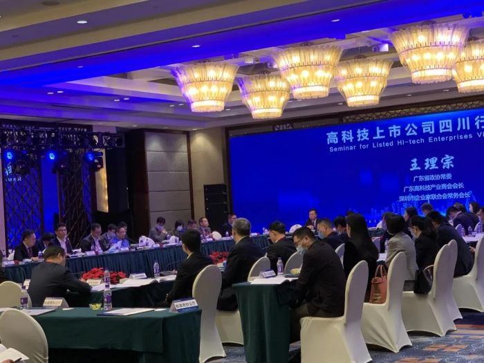 11月18日下午,在“知名企業四川行”活動期間,理宗會長出席了由四川省人民政府主辦,四川省經濟合作局、四川省科學技術廳、宜賓市人民政府共同承辦的高科技上市公司四川行懇談會,并做為發言代表發言,會議由省經濟合作局黨組成員、省經濟合作促進中心主任謝賢榮主持。