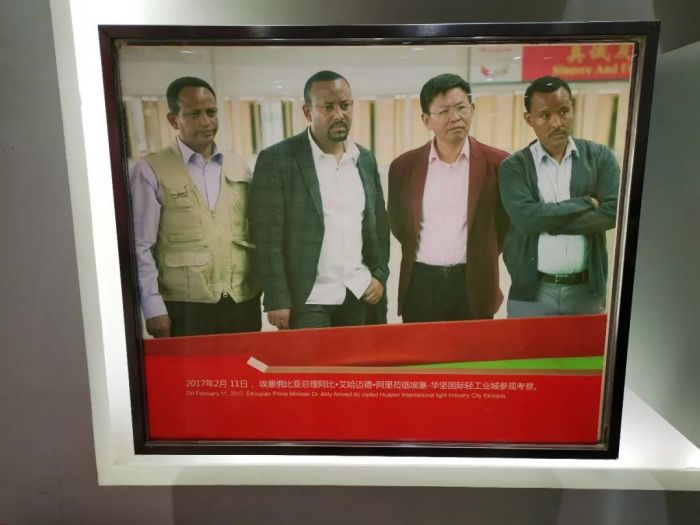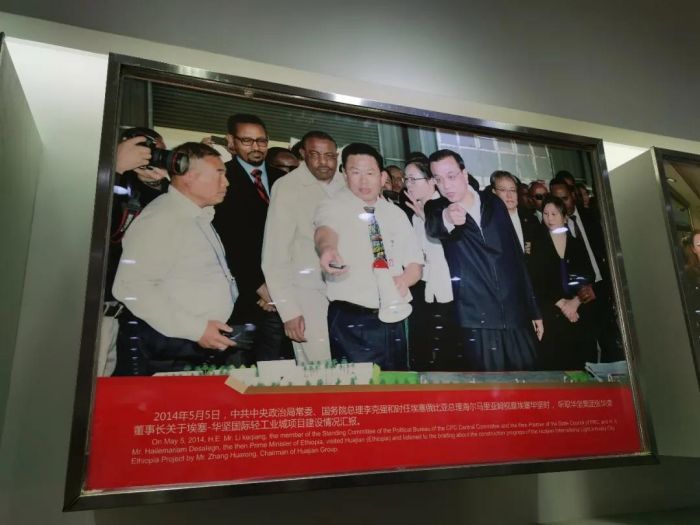 張華榮董事長向商會一行介紹了華堅(jiān)集團(tuán)的發(fā)展史,他用兩句話概括就是聽黨的話,跟黨和政府政策走。他重點(diǎn)分享了他做的三件事情。1996年南下東莞創(chuàng)業(yè),拿到第一桶金;2002年回報(bào)家鄉(xiāng),在江西贛州發(fā)展,解決了數(shù)萬人就業(yè),為贛州的經(jīng)濟(jì)建設(shè)做出了自己力所能及的貢獻(xiàn);2011年響應(yīng)國家“走出去”號召,到埃塞爾比亞投資建廠,推動非洲工業(yè)的發(fā)展。他還懷抱著要為非洲10萬人解決就業(yè)等三個夢想。