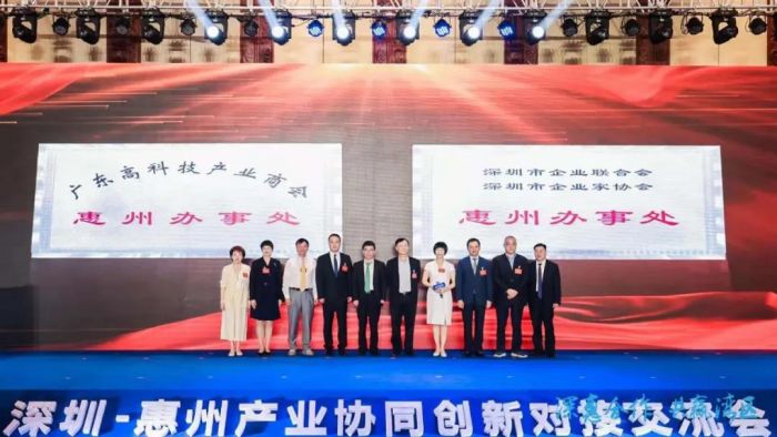 4月20日,由惠州市人民政府主辦、廣東高科技產(chǎn)業(yè)商會承辦的“深惠合作·共贏灣區(qū) 深圳—惠州產(chǎn)業(yè)協(xié)同創(chuàng)新對接交流會” 在深圳召開,廣東高科技產(chǎn)業(yè)商會、深圳市企業(yè)家聯(lián)合會惠州辦事處在會議上揭牌,惠州市委常委、秘書長余金富、副市長陳高燕、市政府副秘書長周海英、王理宗會長及黃宏生、劉志雄、董李、唐健、李金鳳和陳炳昌會長共同見證揭牌儀式。