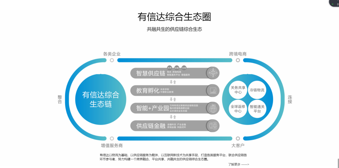 不僅如此,有信達還大力發(fā)展冷鏈物流和電商產(chǎn)業(yè),全面擴大有信達的服務(wù)領(lǐng)域。與萬科旗下萬緯物流達成項目投資合作,聯(lián)手運營“萬緯有信達智能供應(yīng)鏈物流園”,該園區(qū)總投資額預(yù)計10個億,將建設(shè)成為智能物流信息平臺、冷鏈全鏈條產(chǎn)業(yè)基地、全球食品保稅展示交易中心、國際中轉(zhuǎn)分撥集拼中心、國際陸港等先進業(yè)態(tài)于一體的智慧冷鏈物流服務(wù)綜合體。同時啟動鹽田港區(qū)MCC集拼項目,未來打造灣區(qū)海、空、鐵及綜保區(qū)互聯(lián)互通、多式聯(lián)運的集拼平臺。