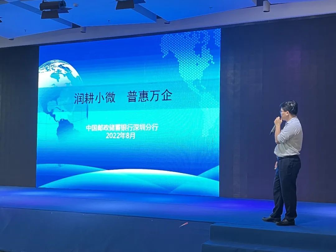 中國郵政儲蓄銀行春風支行黃龍進行了關于“潤耕小微,普惠萬企”的產(chǎn)品宣講。他向在座的各位企業(yè)家介紹了郵儲銀行,2019年12月10日,中國郵政儲蓄銀行股份有限公司正式登入A股,募集資金總額達327.1億元,是近十年來規(guī)模最大的IPO,國有大型商業(yè)銀行“A+H”兩地上市全面收官。2019年末,全行總資產(chǎn)10.22萬億,資產(chǎn)規(guī)模居國有商業(yè)銀行第5位。為深入貫徹落實黨中央、國務院關于實施更加積極就業(yè)政策的要求,2020年5月25日,深圳銀保監(jiān)、深圳人行、深圳市財委、深圳人社局聯(lián)合發(fā)布《深圳市創(chuàng)業(yè)擔保貸款實施辦法》啟動全市銀行招標,郵儲銀行成為中標銀行,并開展普惠金融貸款產(chǎn)品業(yè)務助力企業(yè)發(fā)展。中國郵政儲蓄銀行春風支行黃龍介紹了普惠金融貸款產(chǎn)品的主要內容包括:企業(yè)創(chuàng)業(yè)擔保貸、小微易貸、專精特新貸、抵押類產(chǎn)品、以及理財信貸等其他金融服務。踐行小微金融額度足,單列信貸額度,無需排隊。隊伍專,專職化的客戶經(jīng)理隊伍和審批隊伍。審批快,資料簡便,開辟“綠色通道”。利率優(yōu),不做最低,只做更低的服務承諾。加大對深圳地區(qū)創(chuàng)業(yè)者融資支持力度,促進創(chuàng)業(yè)帶動就業(yè)。
