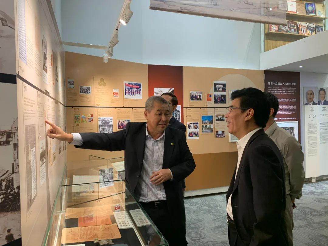 中總秘書長拿督陳鎮明首先帶考察團參觀領航館,給大家講解了中總100多年來的歷史變遷,成果展示,和對中國的友好見證等。